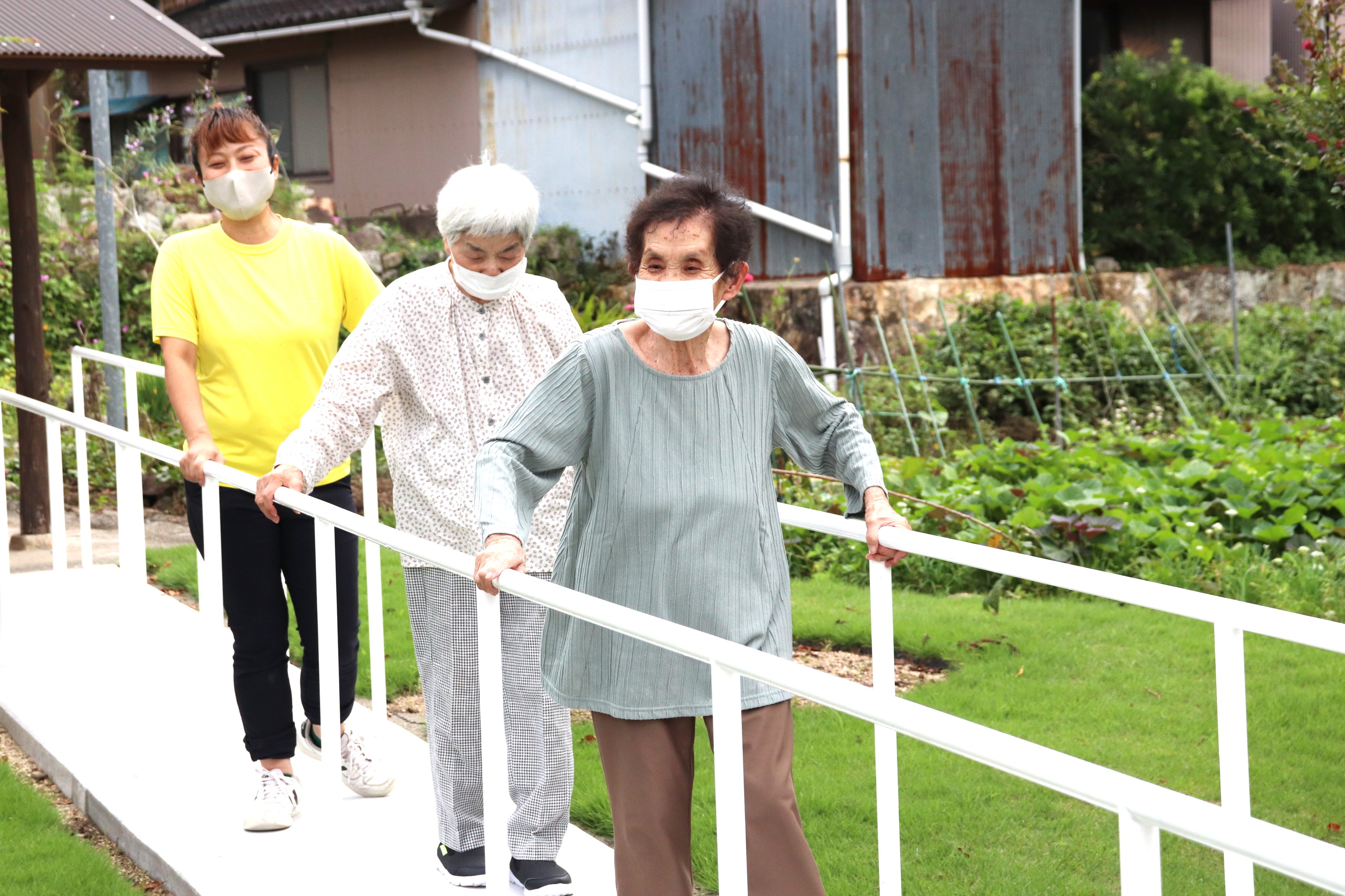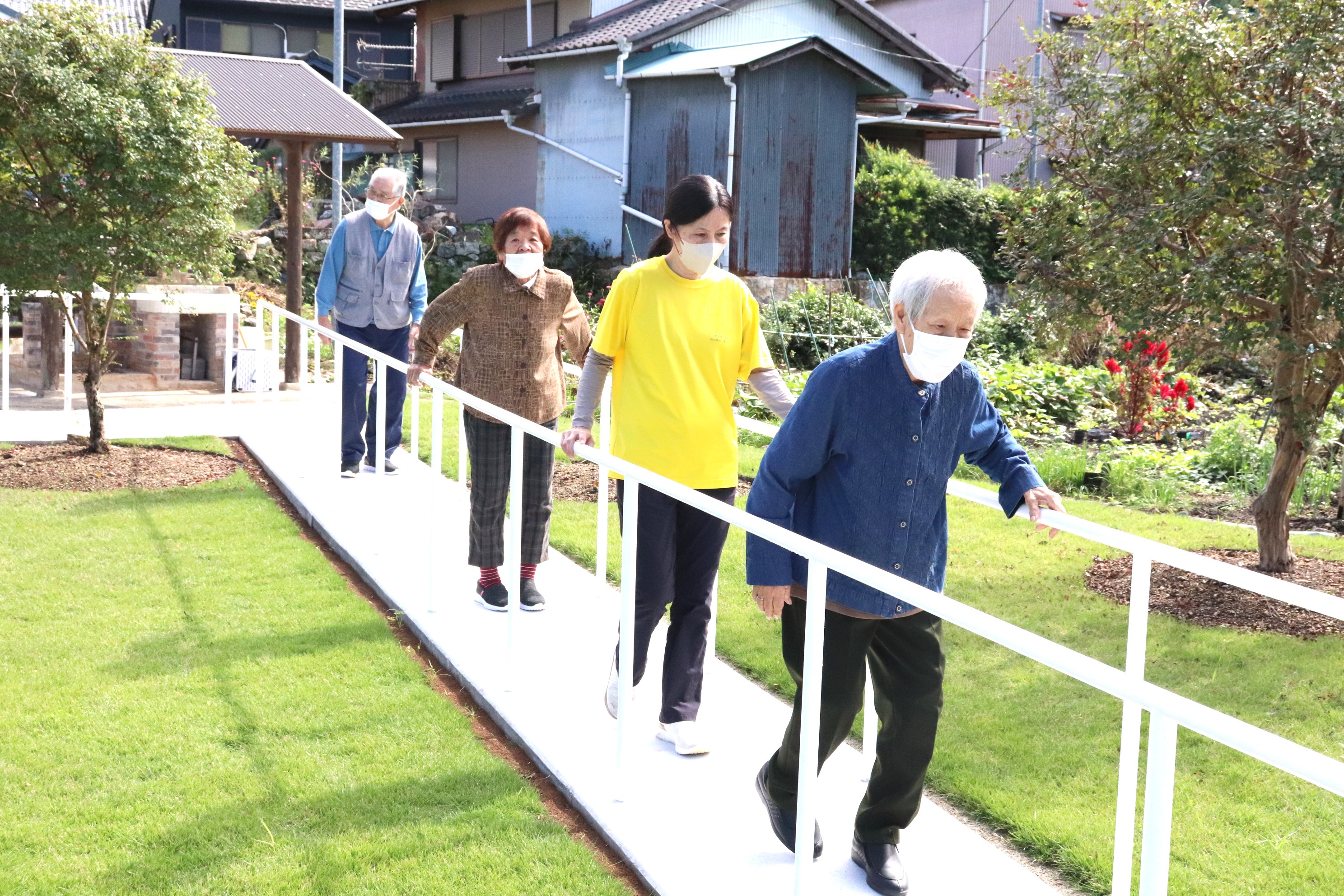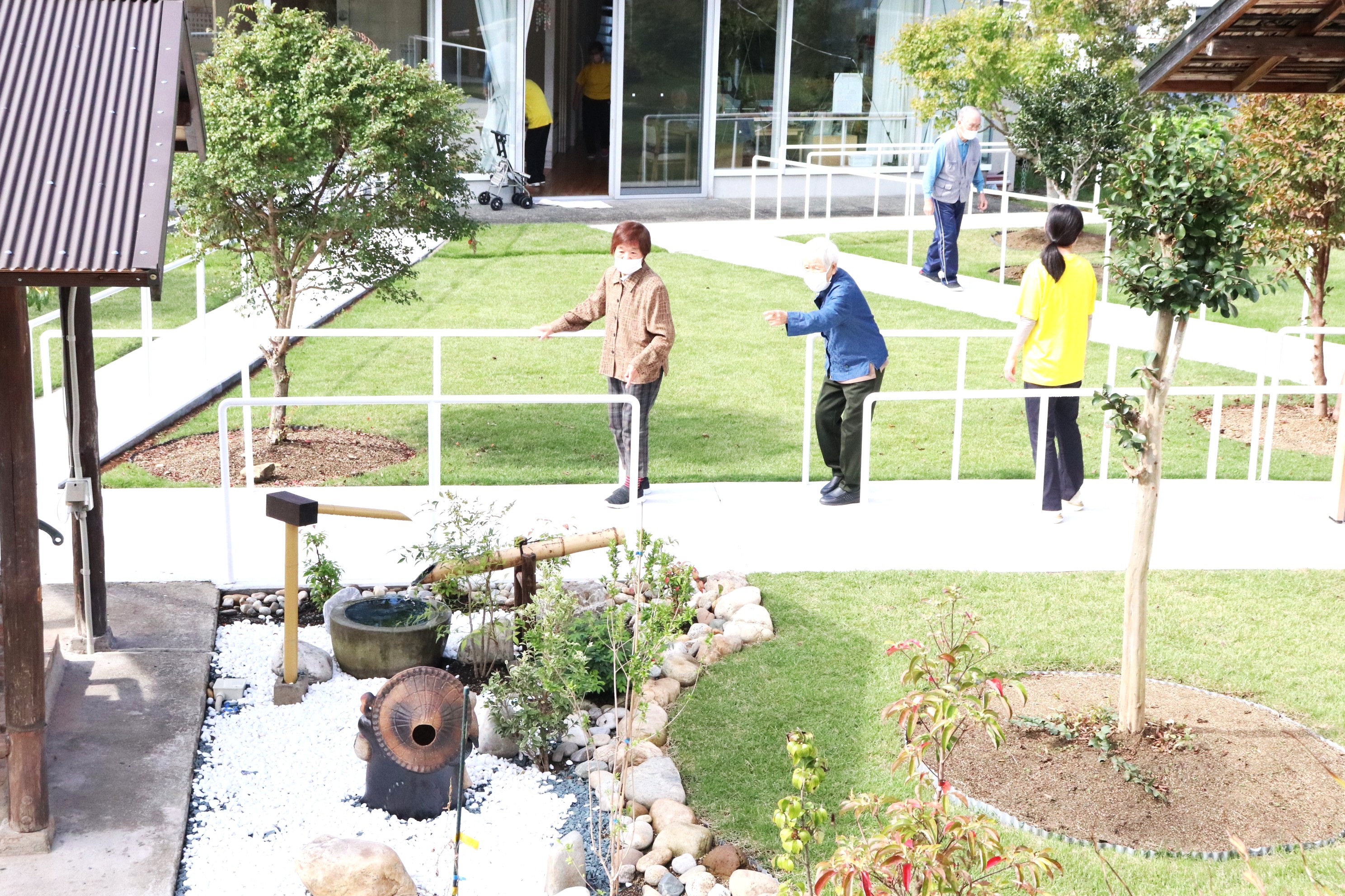 裏庭の芝生広場に、歩行訓練用の遊歩道が出来ました。
