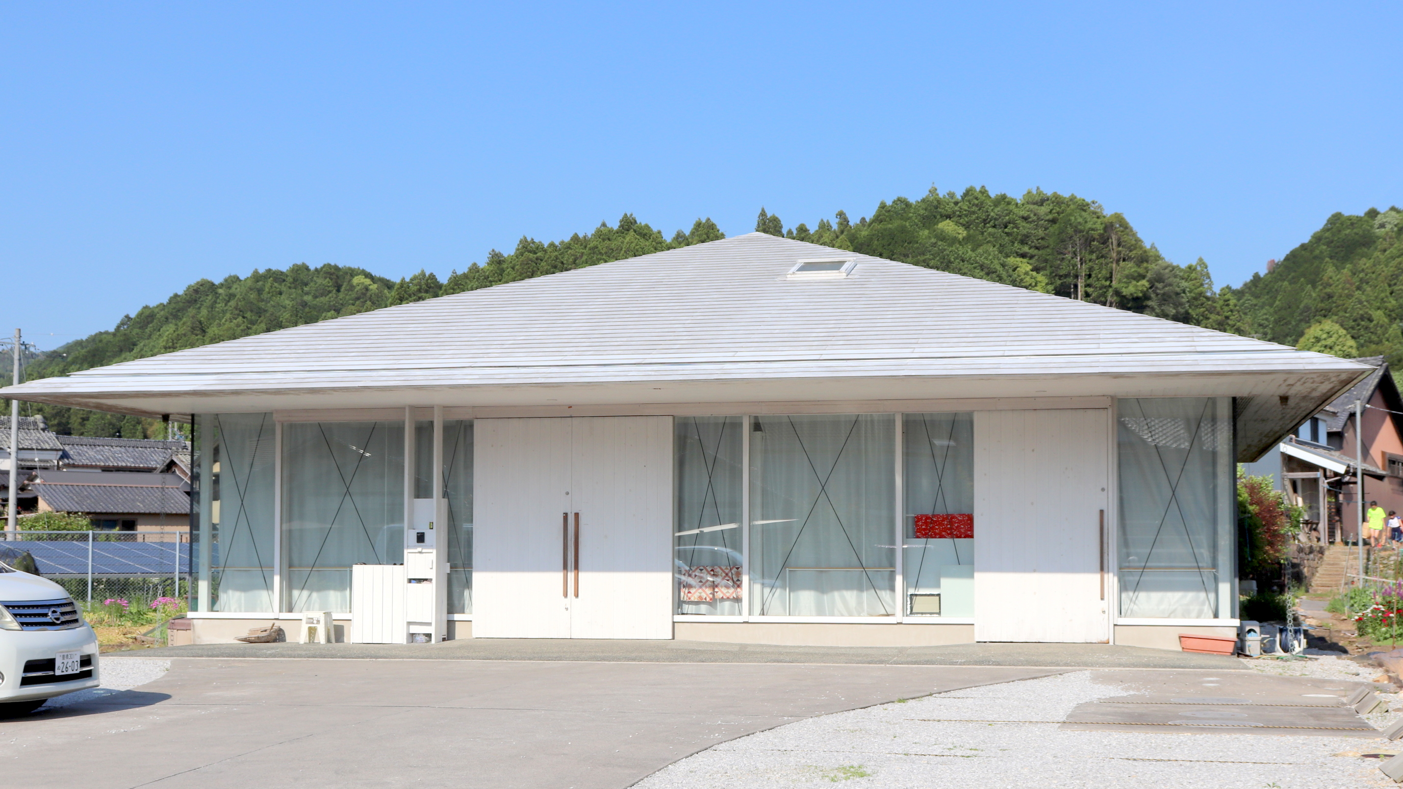 正面から見た施設の風景です。外壁・屋根は