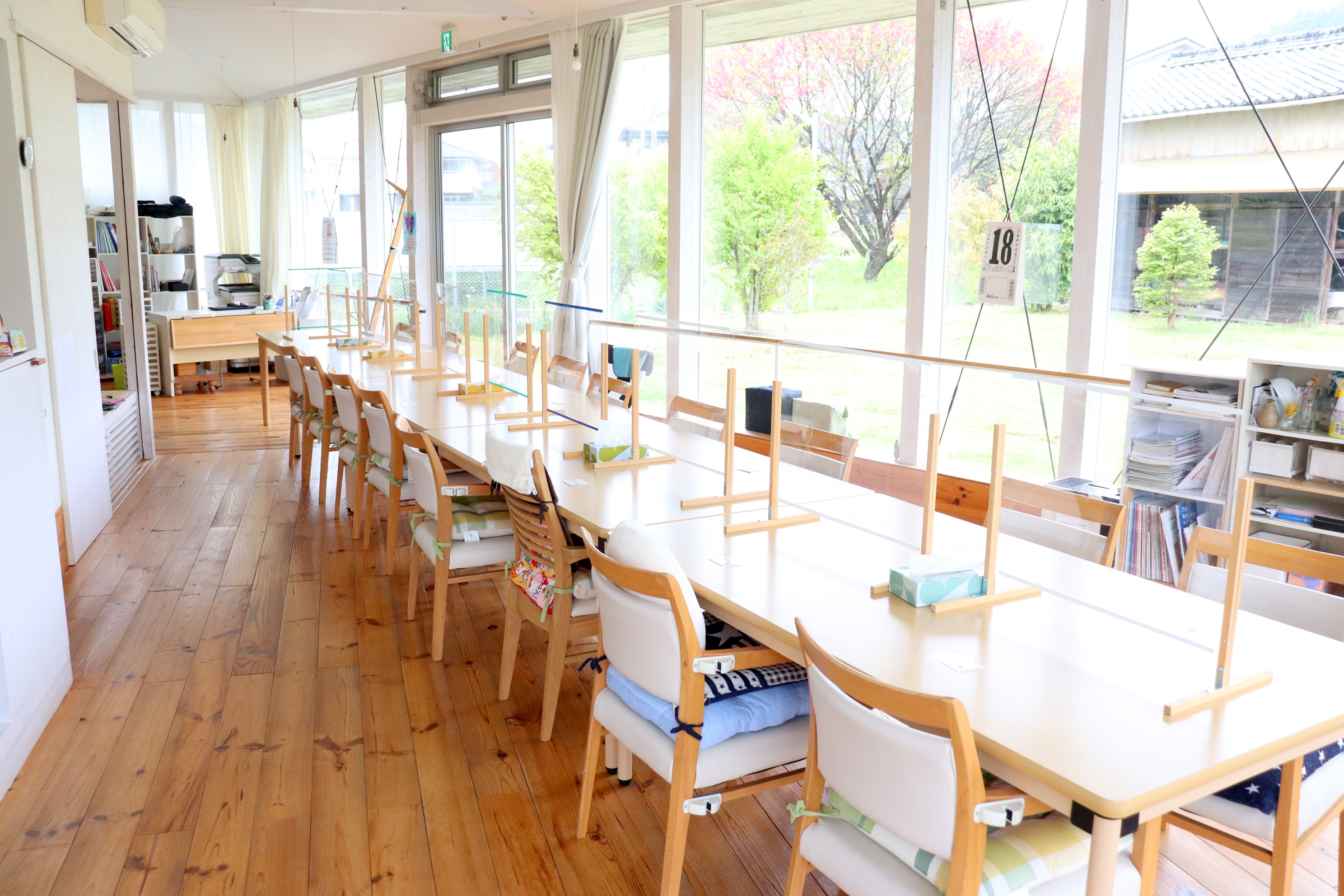 最大18名の利用者様が楽々と座れるスペースを確保しています。
